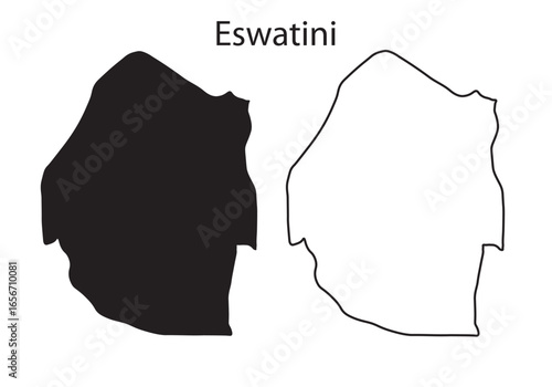 A clean, modern silhouette of Eswatini (formerly Swaziland), a landlocked country in Southern Africa. This minimalist vector illustration is ideal for travel, educational, and political design project