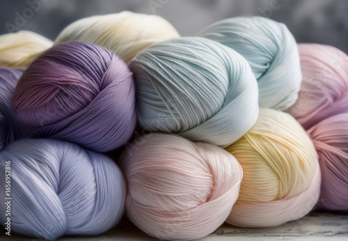 Stapel Wolle in Pastellfarben für Handarbeit, ai generiert