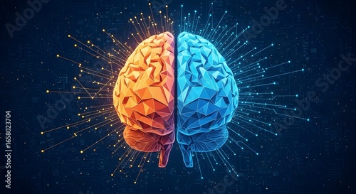 Abstract human brain. Artificial intelligence technology. Science background. Low-poly brain or Artificial intelligence concept. Symbol of Wisdom point. Abstract vector image of a human Brine.