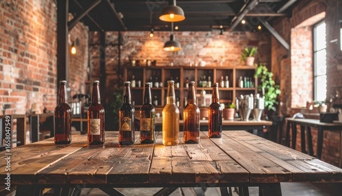 Selection of unique craft beer bottles displayed on a table representing independent breweries and specialty brews