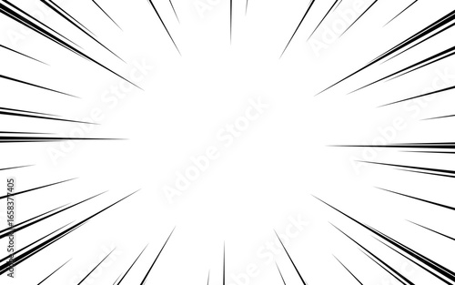 Radial line background for comic books. Manga speed frame, superhero action. Black and white vector illustration.