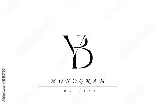 YB Initials Stylized Monogram Design Featuring Intertwined. Artistic representation of monogram initials creatively arranged and displayed.