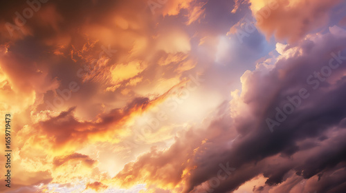 Zachód słońca z dramatycznymi chmurami i promieniami światła