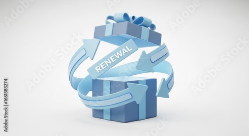 Stylized 3D rendering of a gift box surrounded by arrows indicating renewal concept