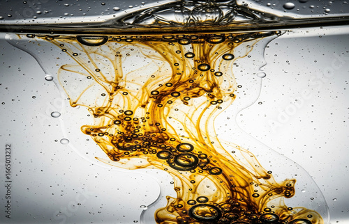 Oil and water mixing under backlight on glass—fluid turbulence at micro scale.