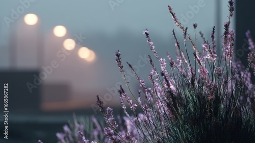 Realistic stock photo of 'outdoor lighting' scene using lavenders tones, conveying a authoritative mood, tailored for Game developers.