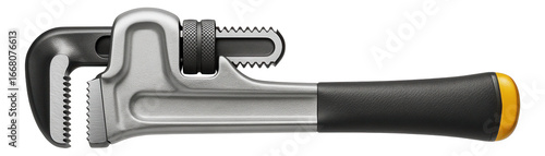 High-torque pipe wrench with a reinforced jaw for handling stubborn fittings in an automotive repair garage.