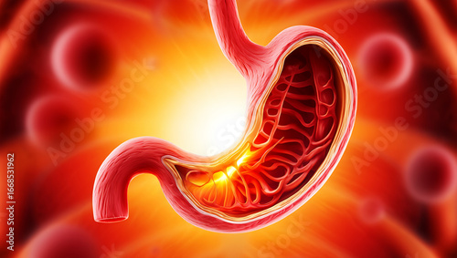 Anatomical Stomach Internal Structure Red Orange Glow anatomy