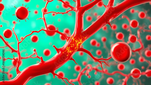 Atherosclerosis Plaque Formation and Clogged arteries disease medical concept with blood cells that is blocked by buildup of cholesterol as arteriosclerotic vascular diseases.