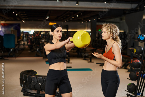 Empowered women in the gym sharing fitness tips and inspiring each other through strength training