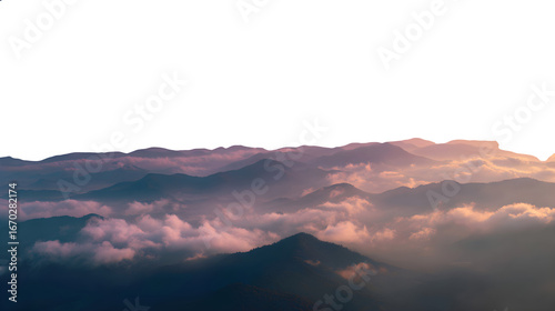Scenic aerial view of sunset over mountain range with dramatic sky
