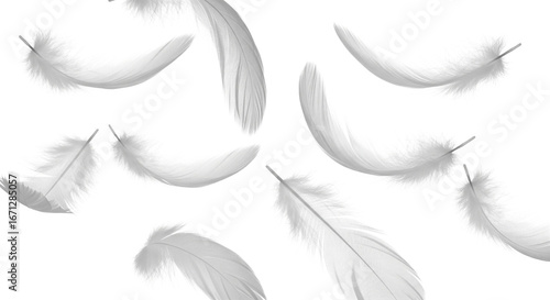 Pure White Feathers Floating, Light and Delicate on Transparent Background