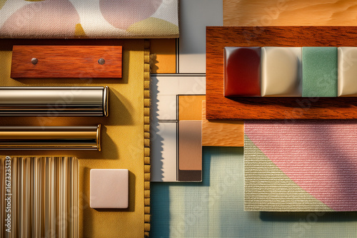 Retro moodboard – tablica inspiracji z materiałami i kolorami do prezentacji wizualizacji klient