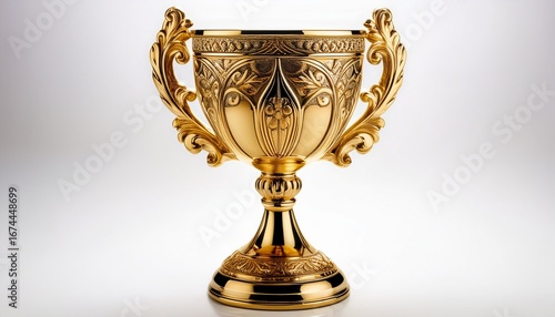 ornate golden goblet cup on white background
