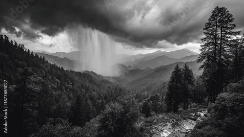 Rainstorms in nature with dramatic clouds, wet forests, and heavy downpour scenes, perfect for seasonal weather and mood-based imagery