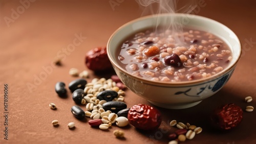 A bowl of steaming Laba porridge, paired with various ingredients, fully demonstrates the warmth and abundance of the traditional food for the Laba Festival.