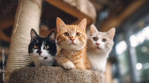 Three adorable cats posing together, showcasing their unique features and charm. They exude a sense of playfulness and curiosity