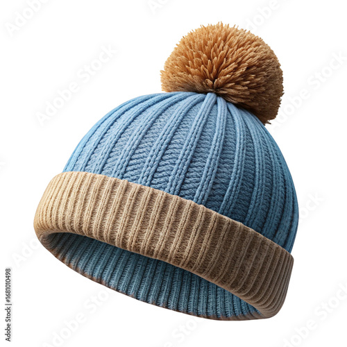 Ciepła, niebieska czapka zimowa z pomponem, izolowana z przezroczystym tłem. Idealny element do projektów graficznych i e-commerce.