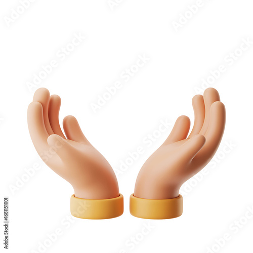 3d illustration of two open hands reaching up, isolated on transparent background