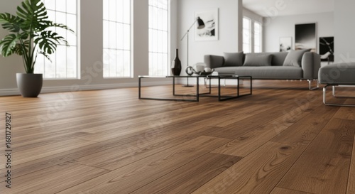 Pan across an elegant room with luxury vinyl plank flooring installed via clicklock highlighting modern aesthetics and durability.
