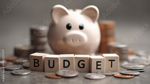 Épargne et gestion financière avec une tirelire et des pièces de monnaie sur une table