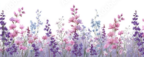 Dainty wildflowers forming a gentle border concept. A vibrant display of colorful flowers in a serene garden setting.