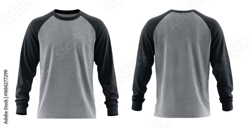 Gray and black raglan sleeve long-sleeved shirt mockup. Front and back views