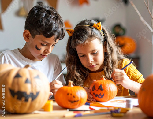 Dzieci tworzą dekoracje na Halloween - zajęcia