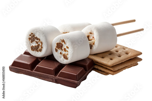 Delicious s mores with chocolate marshmallows and graham crackers recipe on transparent background