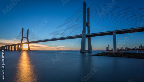 Sunrise in Lisbon, under the Vasco da Gama Bridge, portugal
