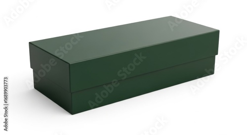 Dark Green Rectangular Box with Lid on White Background for Storage or Packaging