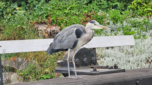 Sweden. The grey heron (Ardea cinerea) is a long-legged wading bird of the heron family, Ardeidae, native throughout temperate Europe and Asia, and also parts of Africa.