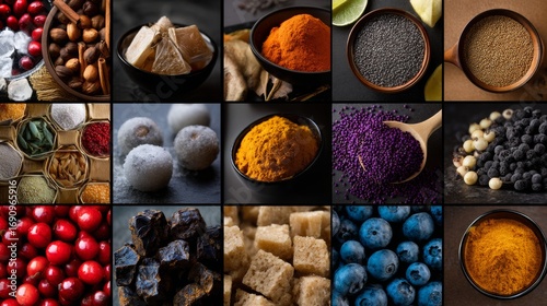 Flatlay rustic grid spices photography lifestyle organic natural gourmet inspiration stylish decor artistic composition creative design modern healthy colorful arrangement