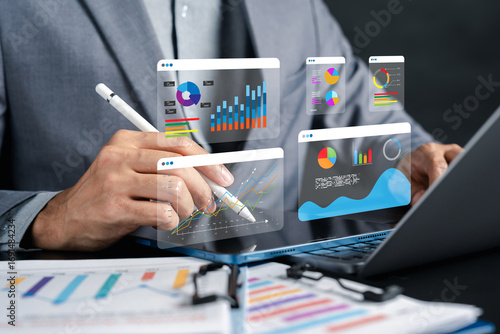 Investment strategy planning with digital charts, graphs, and financial reports, showing data analysis, market trends, economic growth, business forecasting, and financial decision making for success.