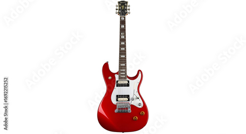 Red electric guitar six string music instrument professional performance audio equipment isolated