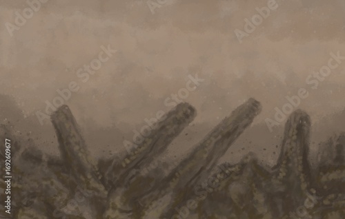 Alien landscepe, concept art, science fiction illustration - digital painting . Painted on a tablet.
