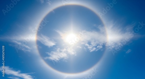 Sun Halo Phenomenon in a Blue Sky with Clouds.