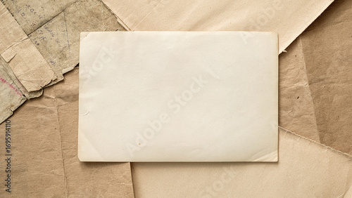 Collection of old papers showcasing blank copy space nestled among various textured sheets of antique documents.