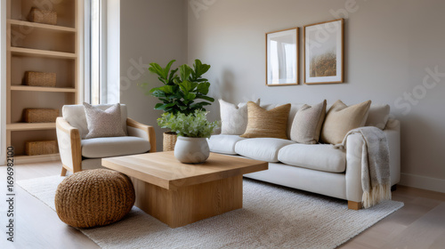 Skandynawski salon, minimalizm i elegancja, inspiracja beżem i zielenią
