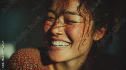 Radiant Joy: A Close-Up Portrait of a Woman's Genuine Smile