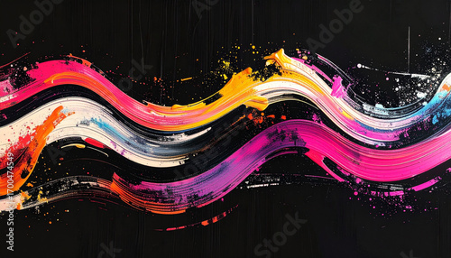 断片化した波形ストライプが走る黒背景のグリッチデザイン – Abstract Distorted Wave Glitch Effect with Fragmented Stripes on Black Backdrop