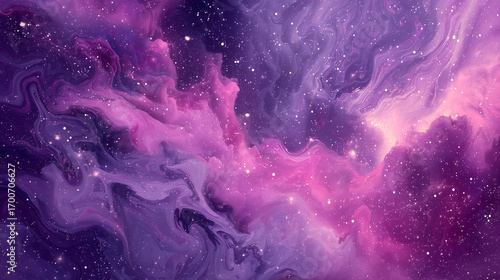 紫と金色の、宇宙のような大理石(マーブル)のテクスチャ