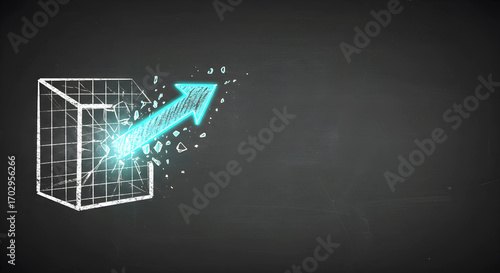 常識の壁を破るブレークスルーのコンセプト。型破りなアイデアで挑戦する、手書きの黒板イラスト背景。