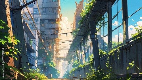 ゲーム背景 終焉後の退廃し無人となった都市廃墟東京