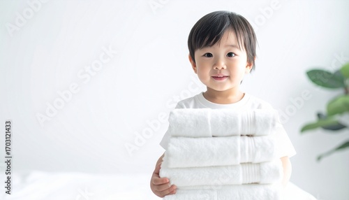 タオルをたたんだ子供