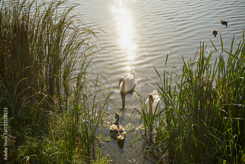 łabędzie,ptaki,jezioro, zalew, woda, zbiornik wodny, kąpielisko