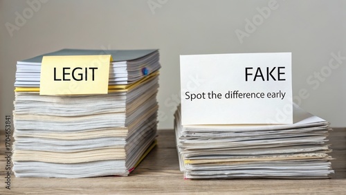Comparison of Legitimate and Fake Documents on a Wooden Table