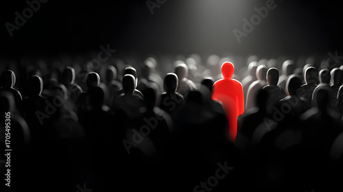 under dense crowd of matte environments. silhouettes, with a striking red figure in sharp contrast spotlight, of black emphasizing the in a insider threats peril data A 44758047 1