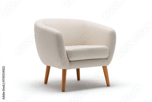 Cream-colored rounded armchair with light-brown legs
