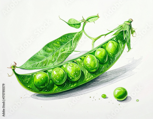 Fresh green pea pod with peas isolated on white background, high resolution vegetable image